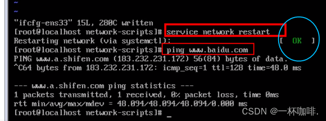 就会出现OK的标志,则代表成功,这是再测试连接百度 输入命令 ping www.baidu.com