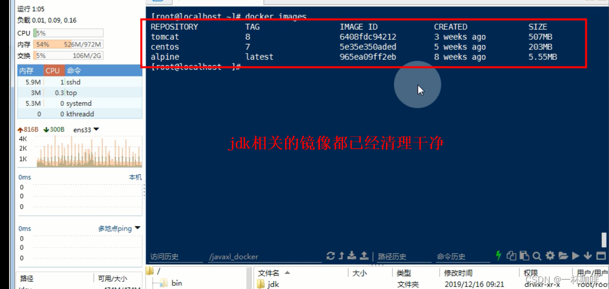 成功啦,接下来就是给大家分享如何从阿里云上拉取我们已上传的镜像,为了方便稍后的演示,我会把所有jdk的镜像都清理干净: