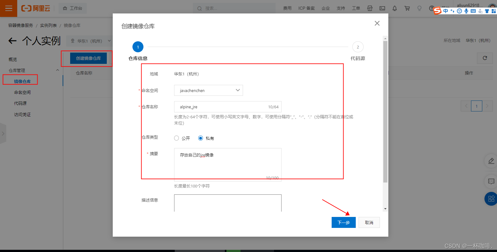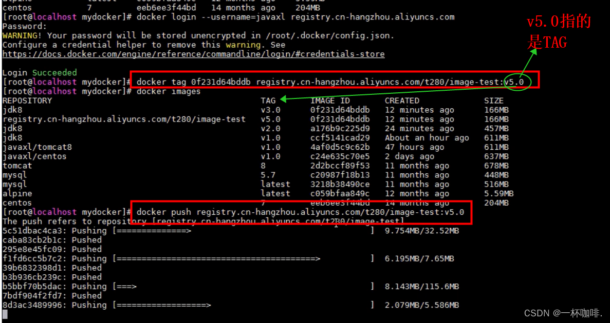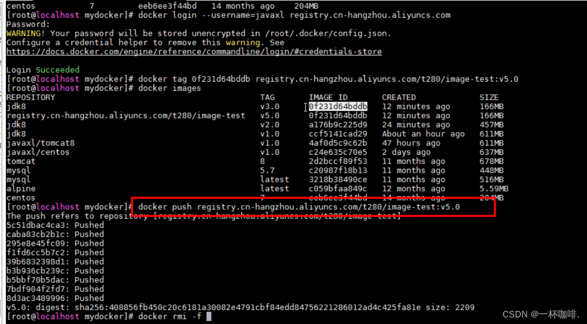 现在进行下一步,把本地的镜像推送到阿里云中来。