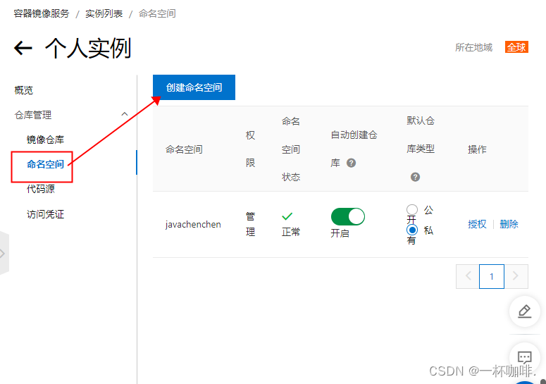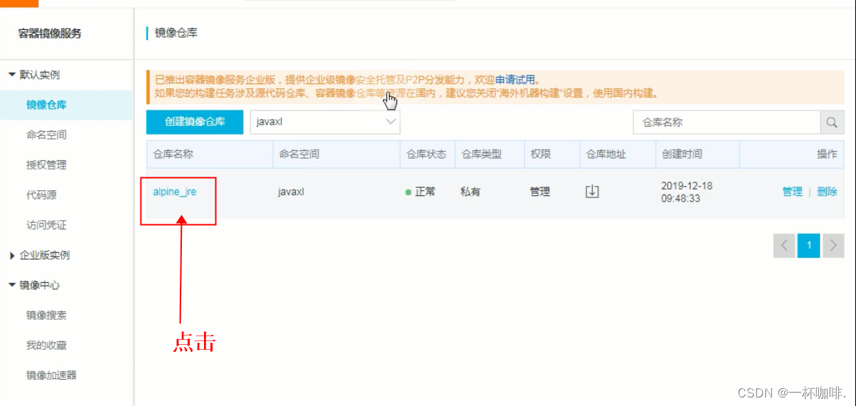服务时设置的密码,忘记密码可以点击菜单:“容器镜像服务”->“默认实例”-->“访问凭证”进行修改