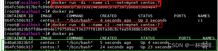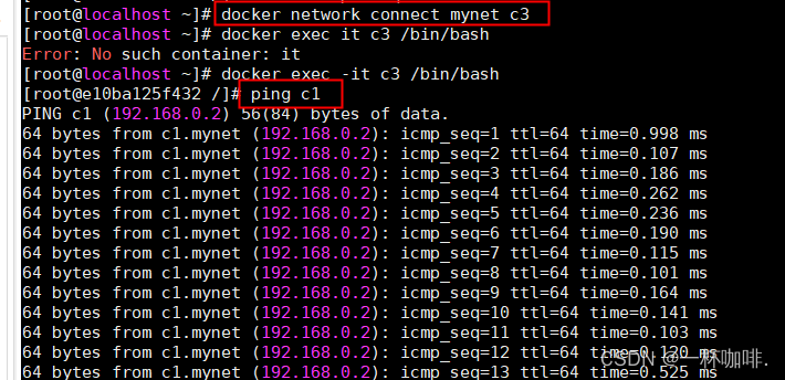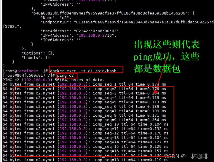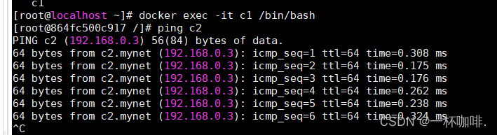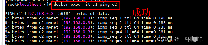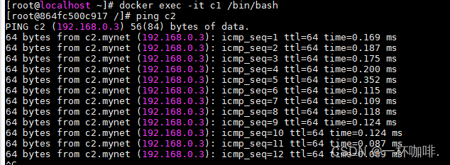 此时c1 ping c2 当然是成功的,因为 这两个容器是在同一网络上