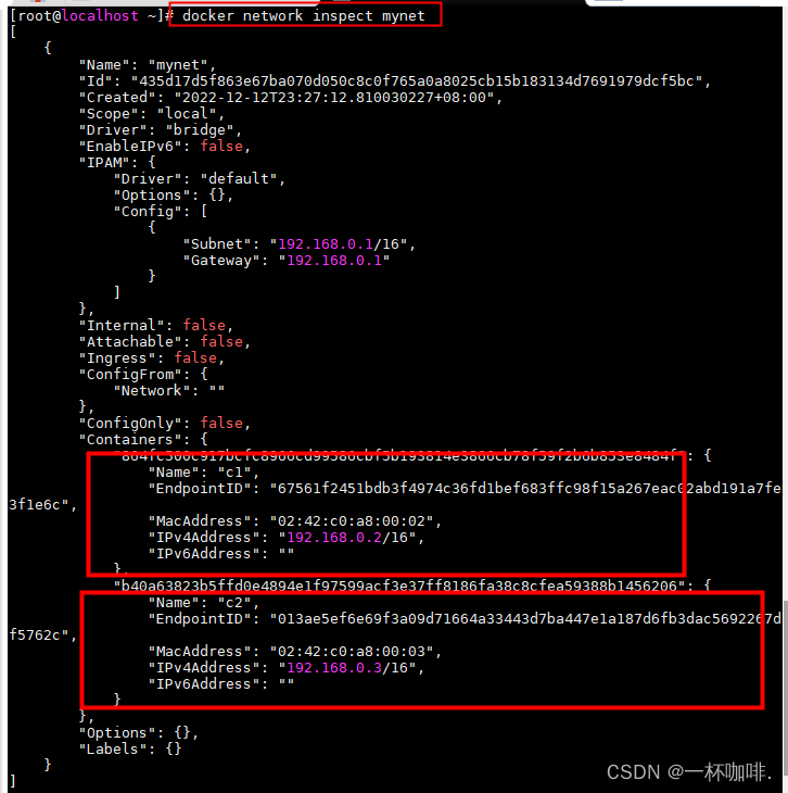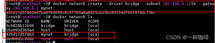 删除自定义网络:docker network rm mynetwork【公式:docker network rm 网络名称】