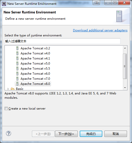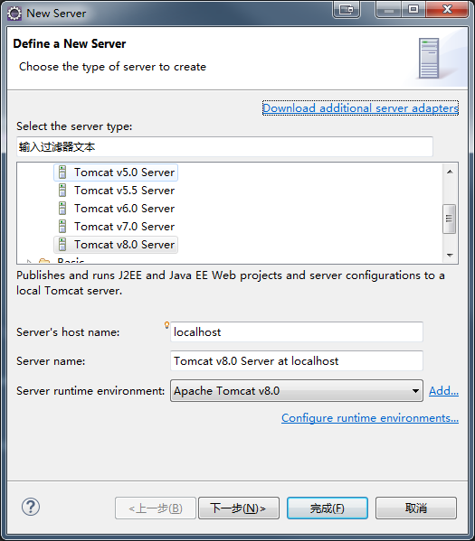 这里就完成了Eclipse和Tomcat的关联,但是还未创建Tomcat服务器。