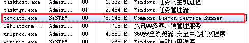 从任务管理器中可以看到,在这个tomcat8w.exe程序上点击star按键,才能启动tomcat8.exe。
