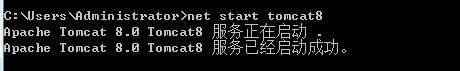 了解了Tomcat的多种打开方式,我们就可以来验证Tomcat是否能工作了,选择Tomcat启动的任意一种方式,如在cmd中键入net start Tomcat8