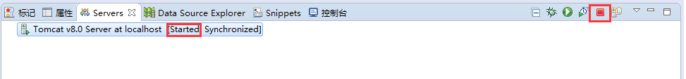 我们可以点击那个绿色的按键,这个按键就是启动服务器,我们会看到在【Servers】标签下的服务器状态已经变为了“start”,而且还有结束的按键也激活:
