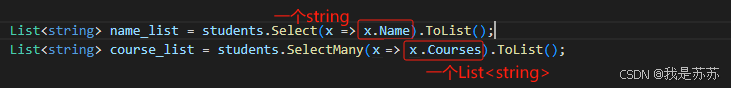 再直白点,一般情况下,select提取内容是T,SelectMany提取的内容是List<T>