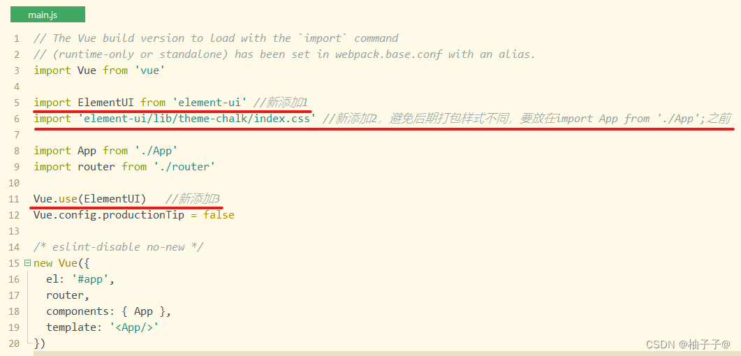 1.3 在项目中src目录下找到main.js,并在指定位置添加三行代码(main.js是入口文件,所以在这里引入就行,页面就不用引入了)