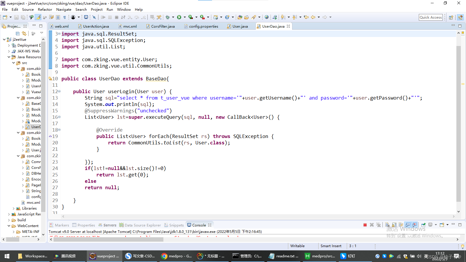 String sql="select * from t_user_vue where username='"+user.getUsername()+"' and password='"+user.getPassword()+"'";