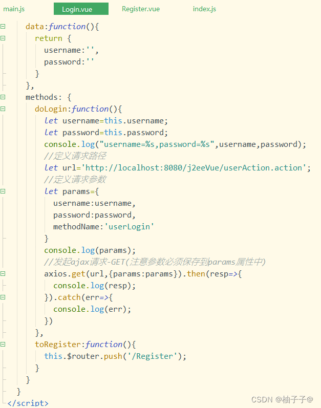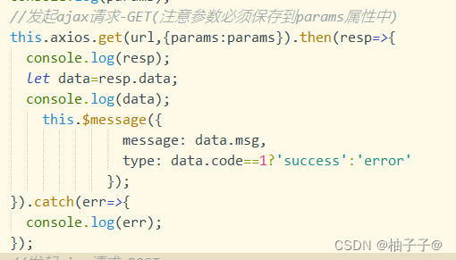 axios.get('/user', {//注意数据是保存到json对象的params属性