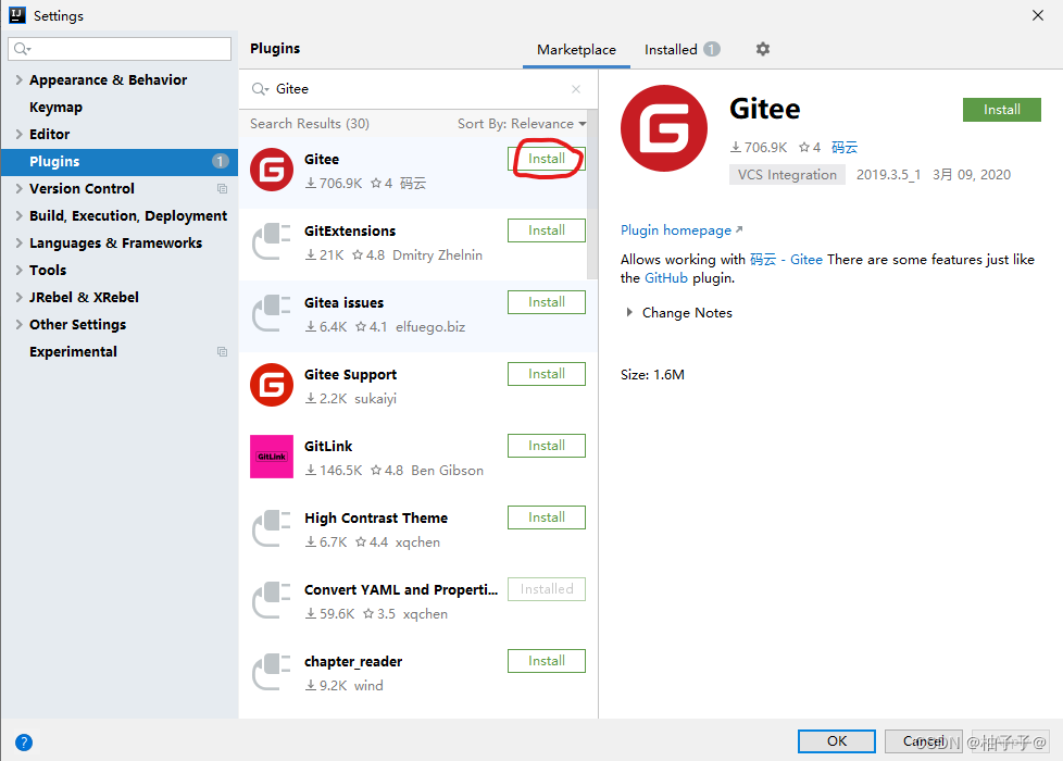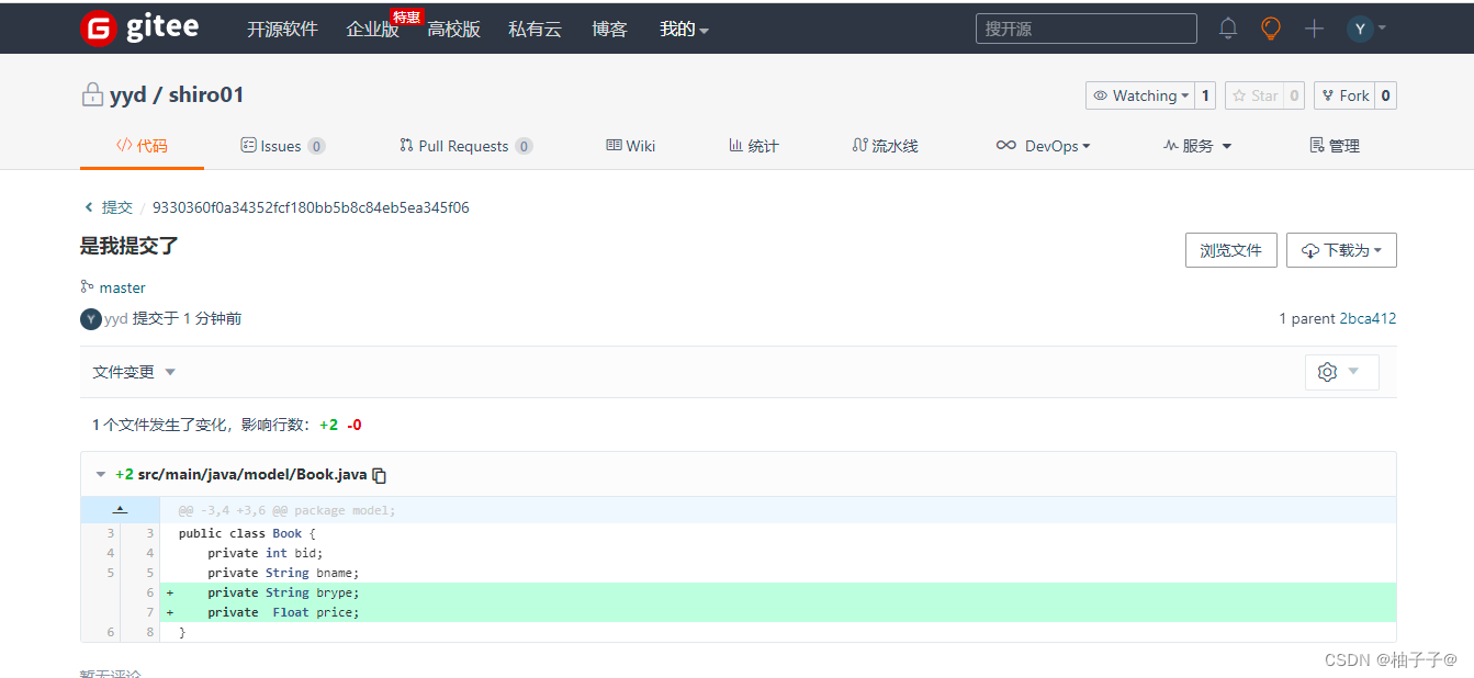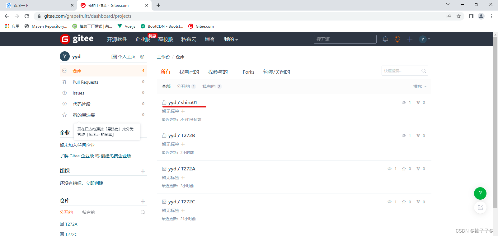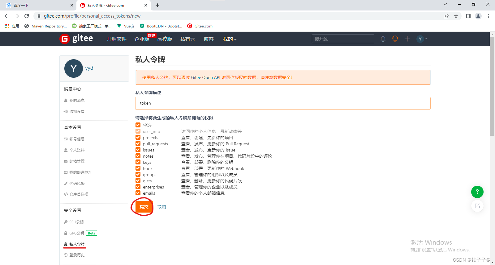 1.登陆到自己的gitee,点击右上角的倒立小三角形。选择设置