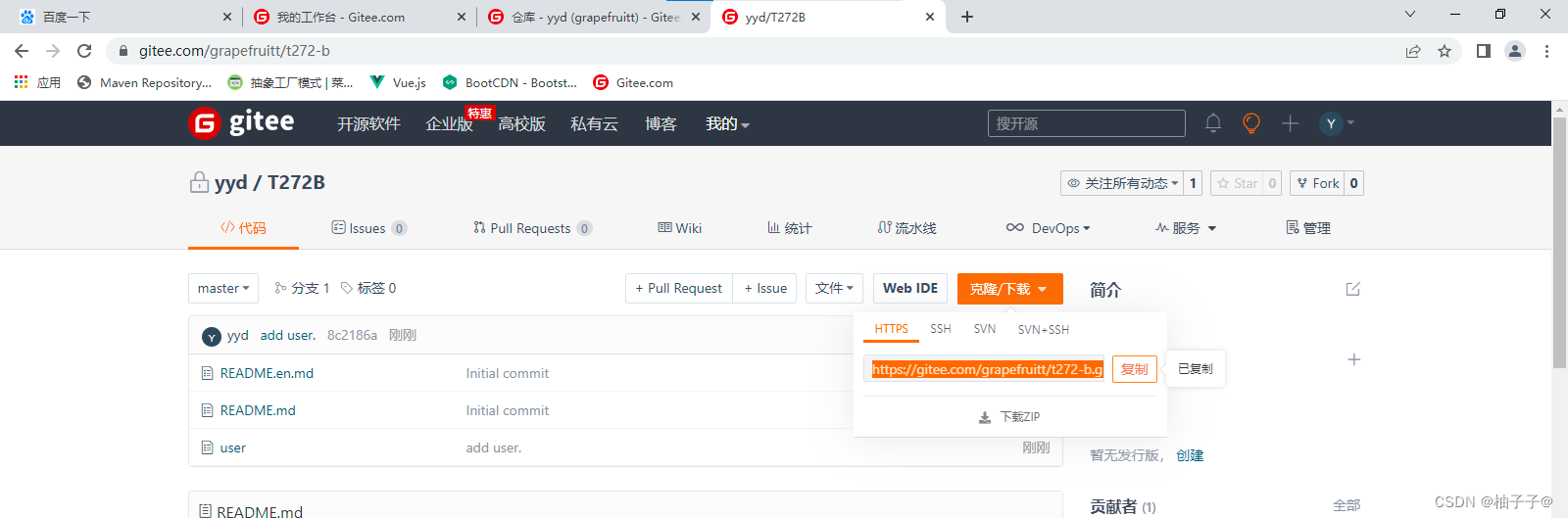 2.https url 在push的时候是需要验证用户名和密码的;而 SSH 在push的时候,是不需要输入用户名的,如果配置SSH key的时候设置了密码,则需要输入密码的,否则直接是不需要输入密码的。