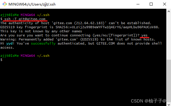 注1:如果本地有ssh,执行以上命令会出现正面的提示,这里选择y,表示覆盖本地的ssh key,其实也就是ssh秘钥删除的意思