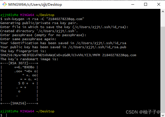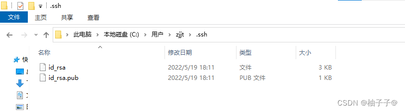 2,执行命令完成后,默认会在window的C:\Users\zjjt\.ssh下面生成如下两个名称的文件: