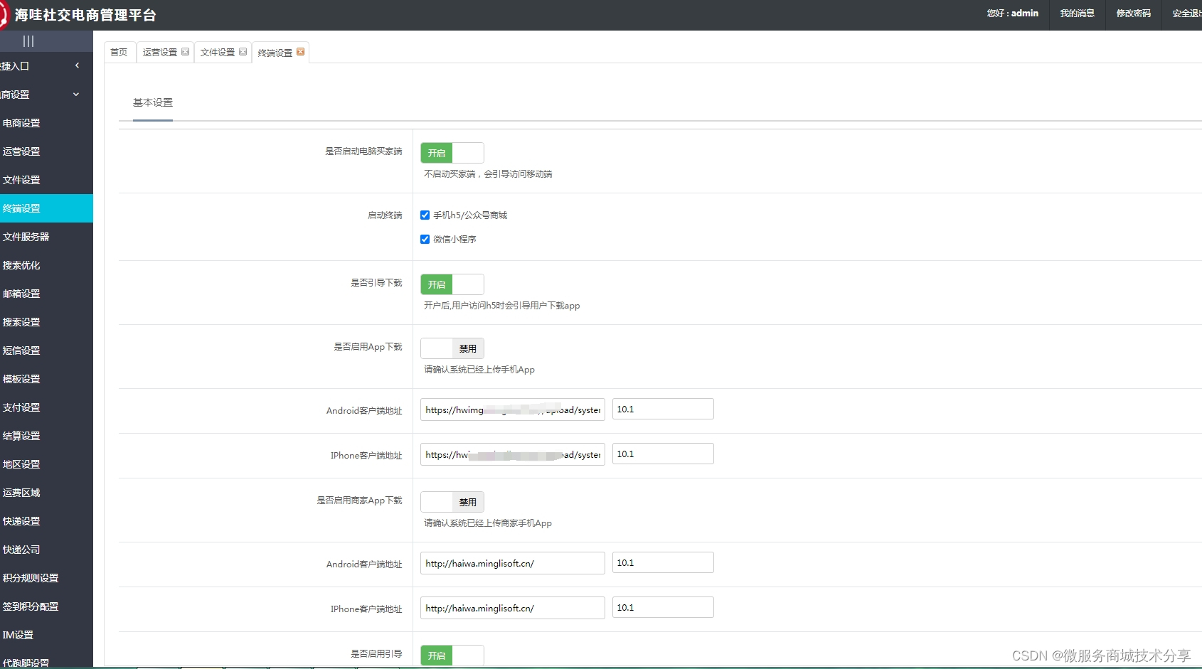 平台管理、商家端(PC端、手机端)、买家平台(H5/公众号、小程序、APP端(IOS/Android)、微服务平台(业务服务)
