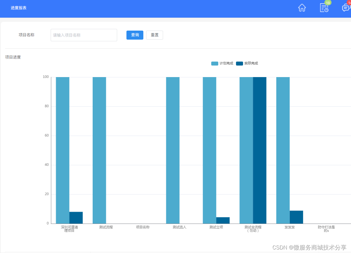 2、进度报表:项目进度报表,包括计划时间和已用资源等信息