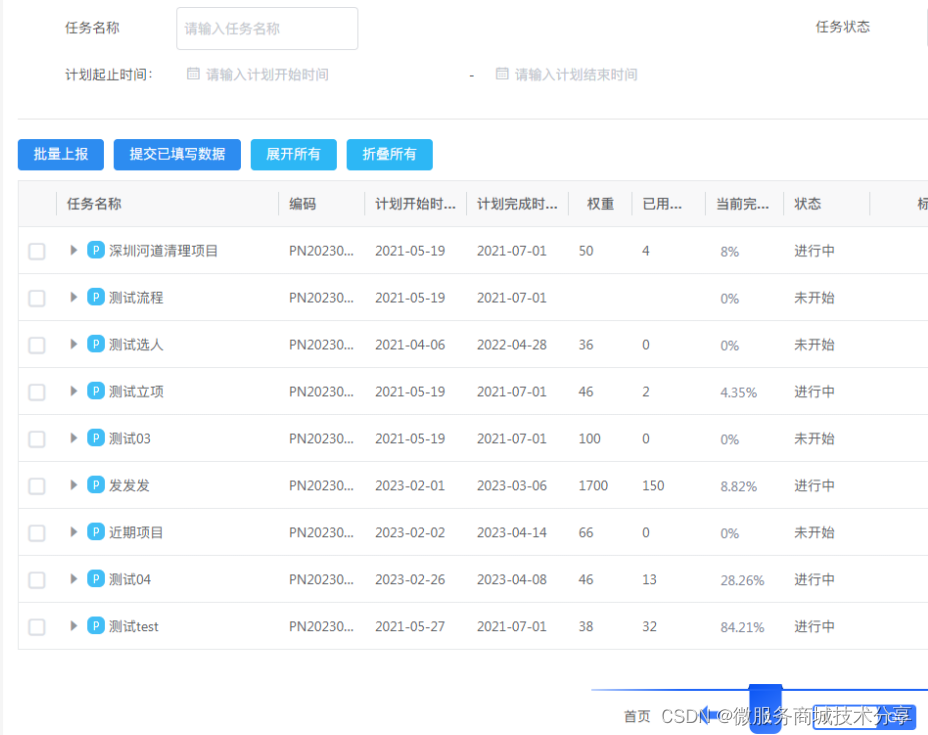 3、进度上报管理:项目进度上报模块,可上报任务或任务步骤进度