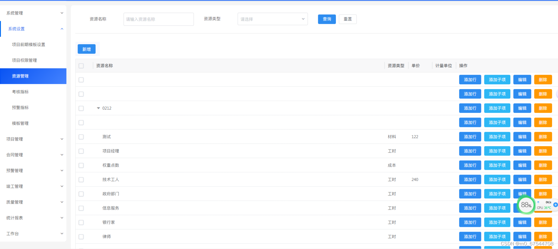 2、项目计划管理:项目计划查看和管理模块,可执行增删改查操作,包括查看甘特图