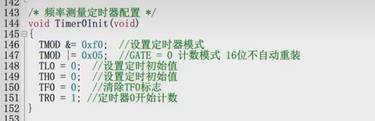 把定时器0 设置为定时器模式的16位不重装模式 01 打开计数模式0101 定时器0是低四位