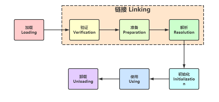 上图中的加载、验证、准备、初始化、卸载这几个步骤是相对固定的,但是初始化这一步不一定,他在某些情况下可以是再初始化之后执行。