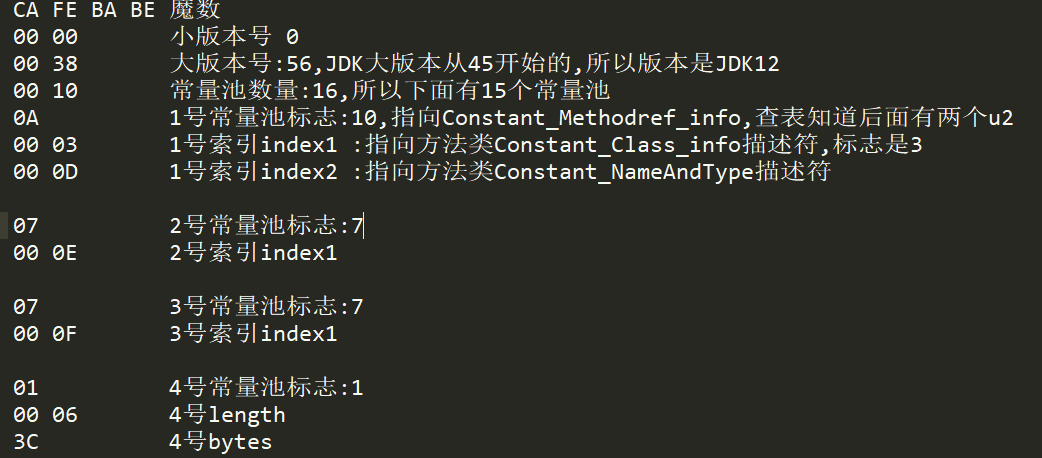 有了无符号数这个概念,就可以根据虚拟机规范来解读上面的文件了: