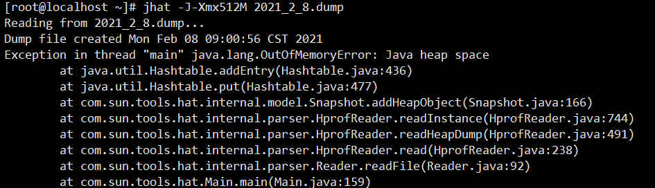 [root@localhost ~]# jhat -J-Xmx512M 2021_2_8.dump