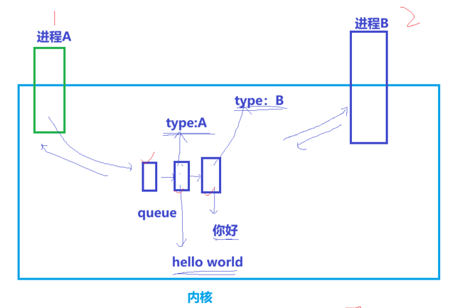 进程A将带有类型(Type: A)的数据块挂入队列。