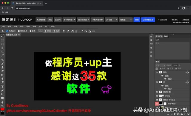 uupoop是一款好用的在线图片处理工具站,堪称在线PS神器,支持编辑psd、xd、sketch等多种格式的文件处理,非常强大。除此之外,上面还集成了各种封面制作、海报制作和GIF动图制作等在线工具,爱了。