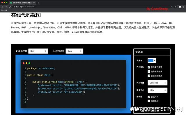 这就得用到这个专门做代码图片的神器工具网站了,比如这里的dute: