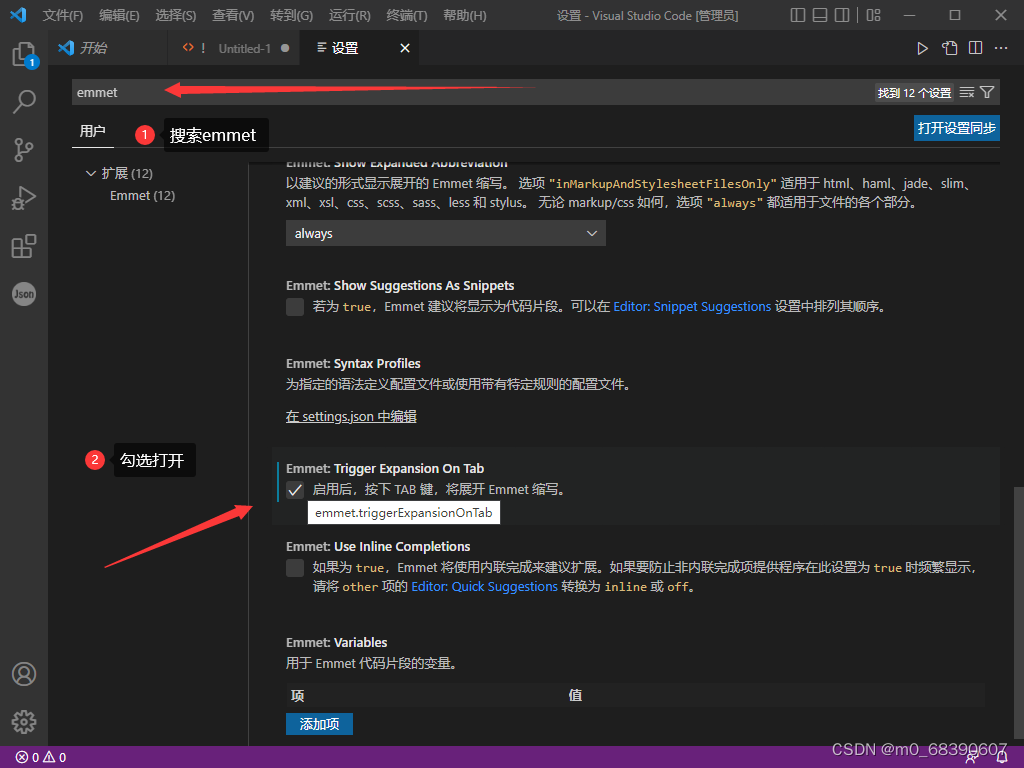 2、输入!无反应 原因:"Trigger Expansion On Tab" 未打开