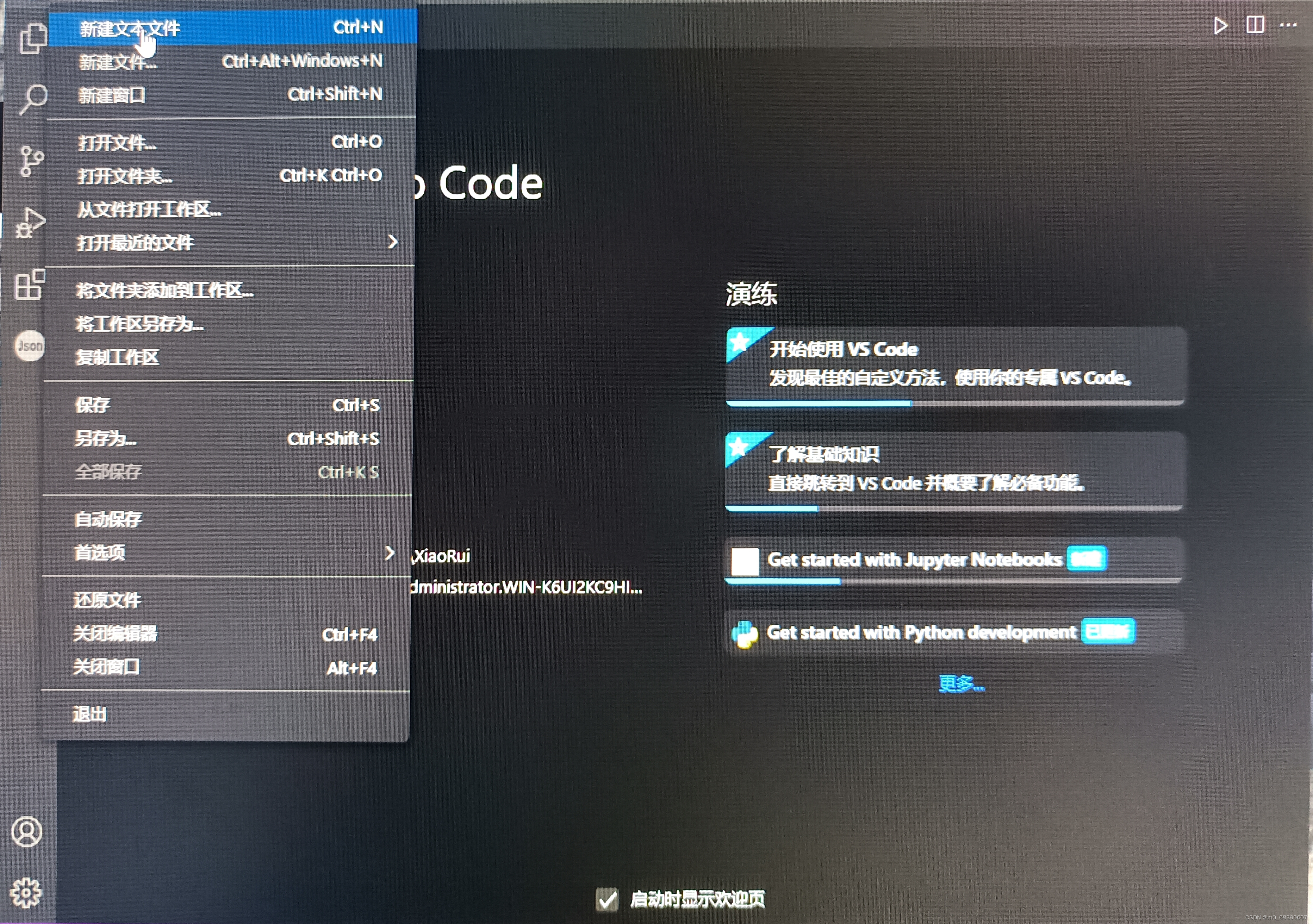 - 选择文件下拉选项中,点击【新建文件】,我一般喜欢先【新建文本文件】。