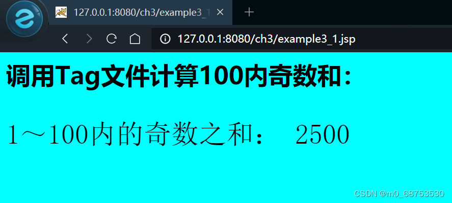 例3_1中的JSP页面使用Tag标记调用oddNumberSum.tag(该Tag 文件见3.3.3节计算100之内的奇数和。)