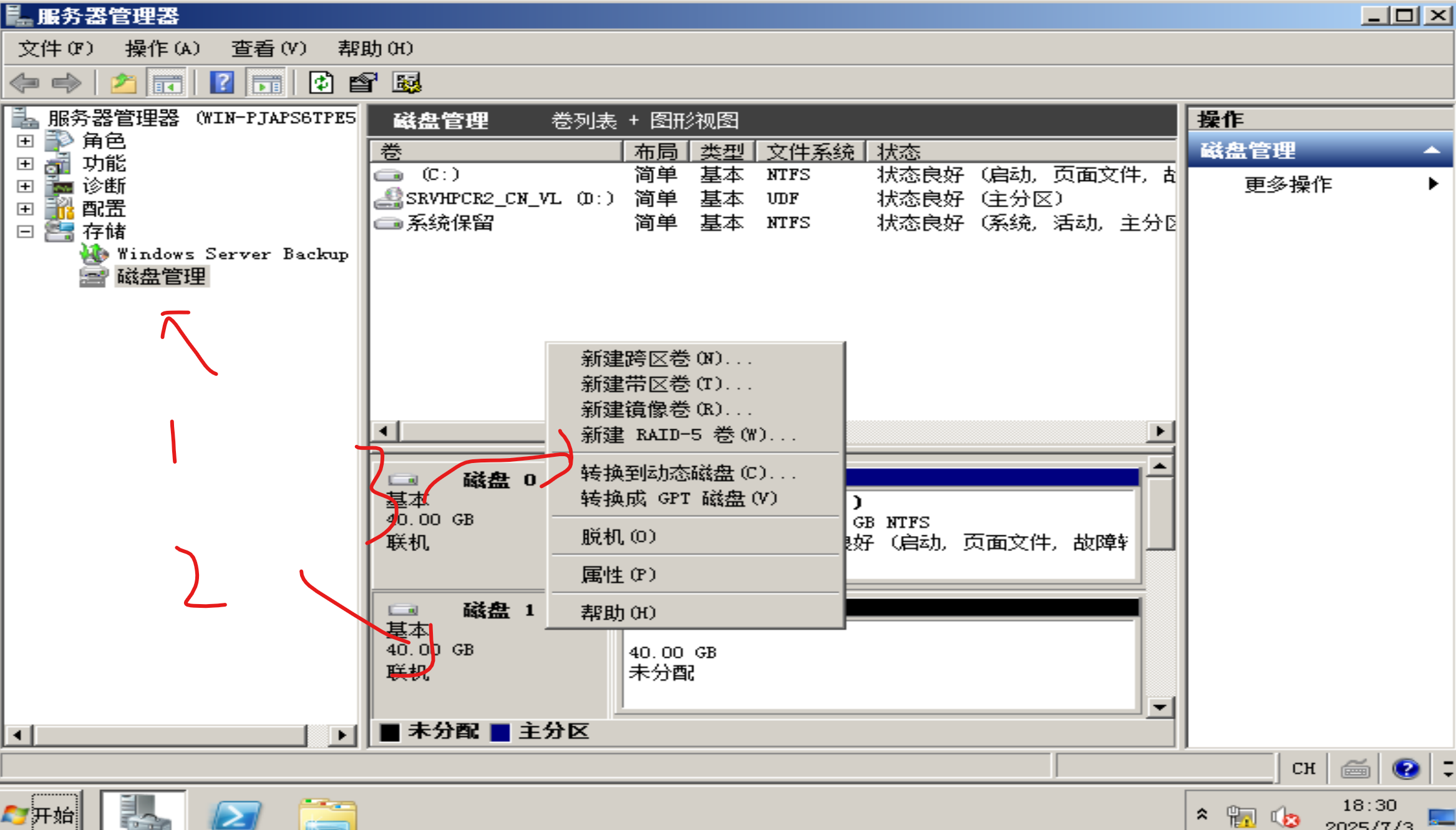 注:转化过程数据通常不会丢失,但建议备份;动态磁盘想要转回基本盘需要删除所有卷。