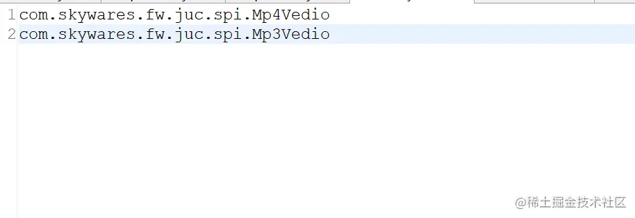 在项目的source目录下新建META-INF/services/目录下,创建com.skywares.fw.juc.spi.VedioSPI文件。