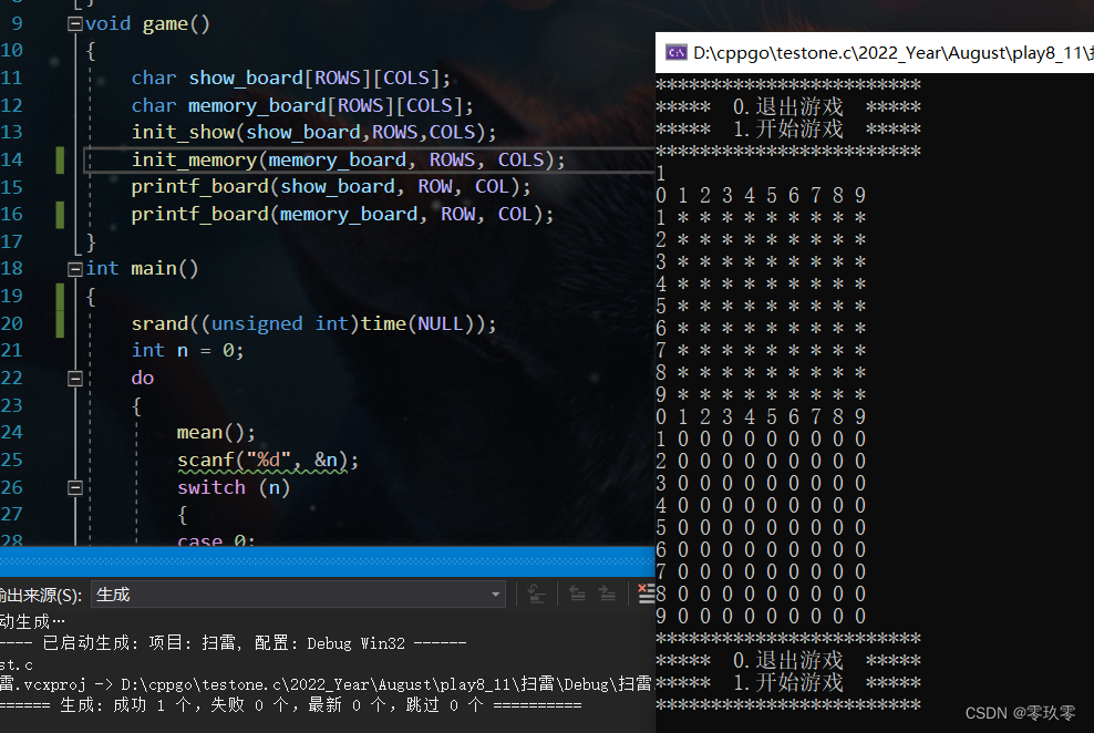init_memory(memory_board, ROWS, COLS);//初始化存放雷的棋盘