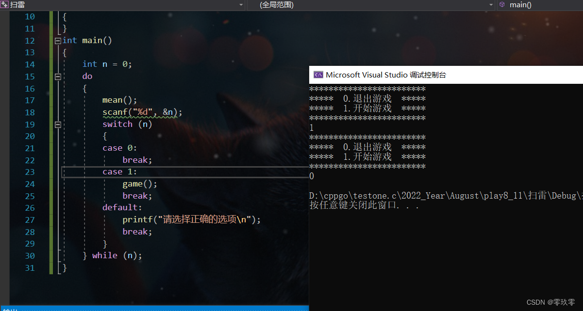 首先我们需要一个菜单来选择开始游戏或者退出游戏,do...while循环至少会运行一次符合我们对游戏程序的要求