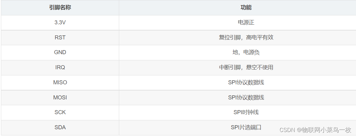 MF RC522 是应用于13.56MHz 非接触式通信中高集成度读写卡系列芯片中的一员。是NXP 公司针对“三表”应用推出的一款低 电压、低成本、体积小的非接触式读写卡芯片,是智能仪表和便携 式手持设备研发的较好选择。RC522使用的SPI协议,所以它的对应引脚输入输出应该是MISO和MOSI。