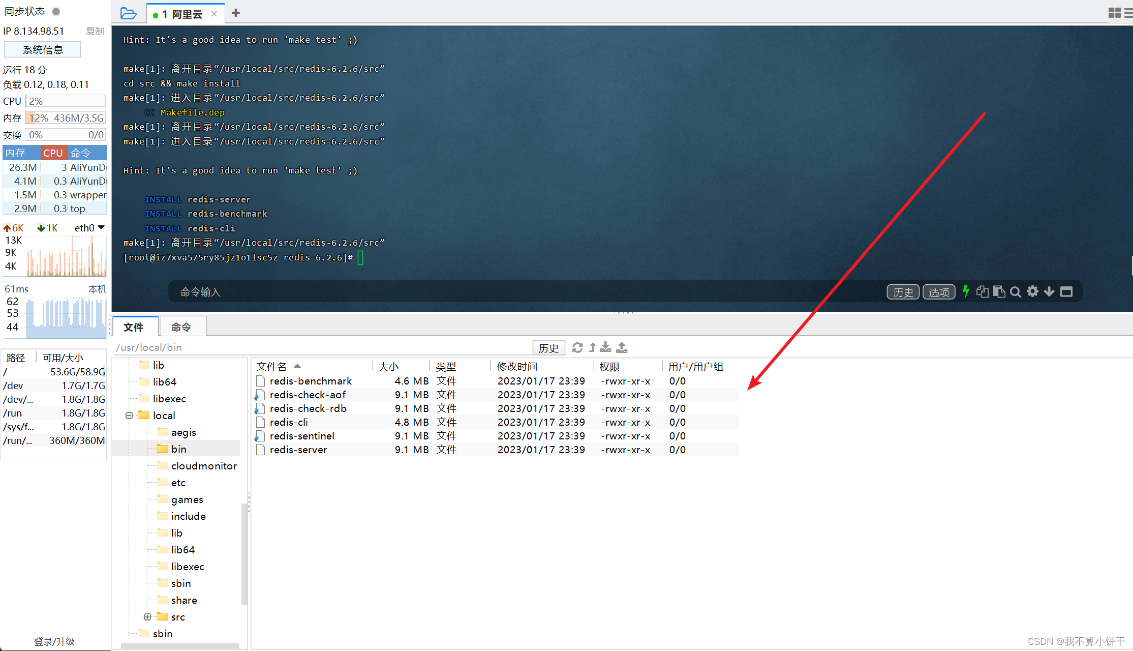 然后将课前资料提供的Redis安装包上传到虚拟机的任意目录: