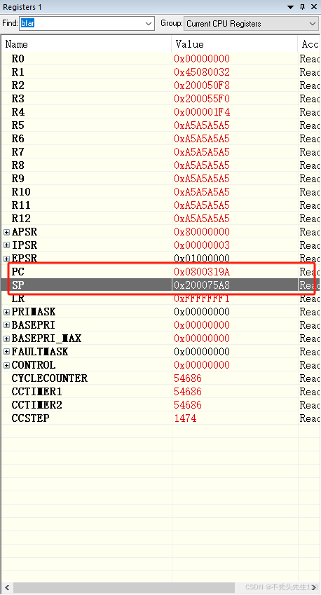 寄存器窗口的PC/LR是异常处理时的实时值,Fault工具显示的是触发异常前硬件自动压栈的原始值,差异由异常入口流程导致: