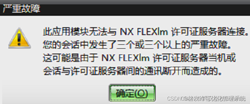 6. 使用NX一段时间后弹出框提示:严重故障,此应用模块无法与NX FLEXlm许可证服务器连接。