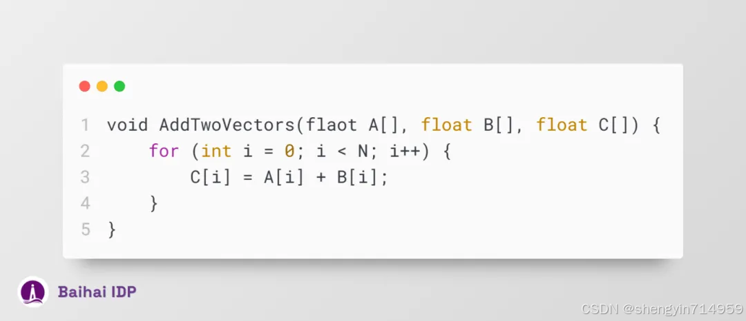 每个 CUDA 线程在执行 kernel 时,都会被赋予一个独一无二的线程 ID,即 threadIdx,它可以通过 kernel 中的预设变量获取。上述示例代码将两个长度(size)均为 N 的向量 A 和 B 相加,并将结果保存到向量 C 中。值得我们注意的是,相较于循环逐次处理成对加法的传统串行方式,CUDA 的优势在于其能够并行利用 N 个线程,一次性完成全部加法运算。