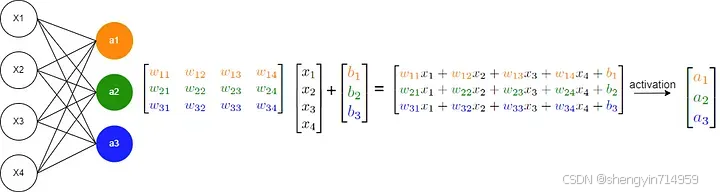接下来,让我们聚焦于一个基础的神经网络模型,其核心运算通常表现为 y = σ(Wx + b),如下图所示: