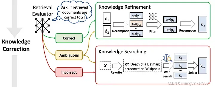 图 4:CRAG 的知识修正(Knowledge correction)流程。Source: Corrective Retrieval Augmented Generation[1]