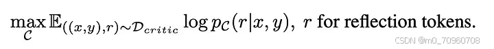 批判模型(critic model)经过训练可生成 reflection tokens 。使用该模型是为了在任务输出中能够离线插入 reflection tokens ,从而更新训练语料库(training corpus)。