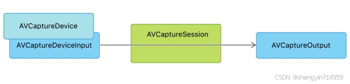 Camera由AVCaptureDeviceInput、AVCaptureSession、AVCaptureOutput构成。如下图所示:
