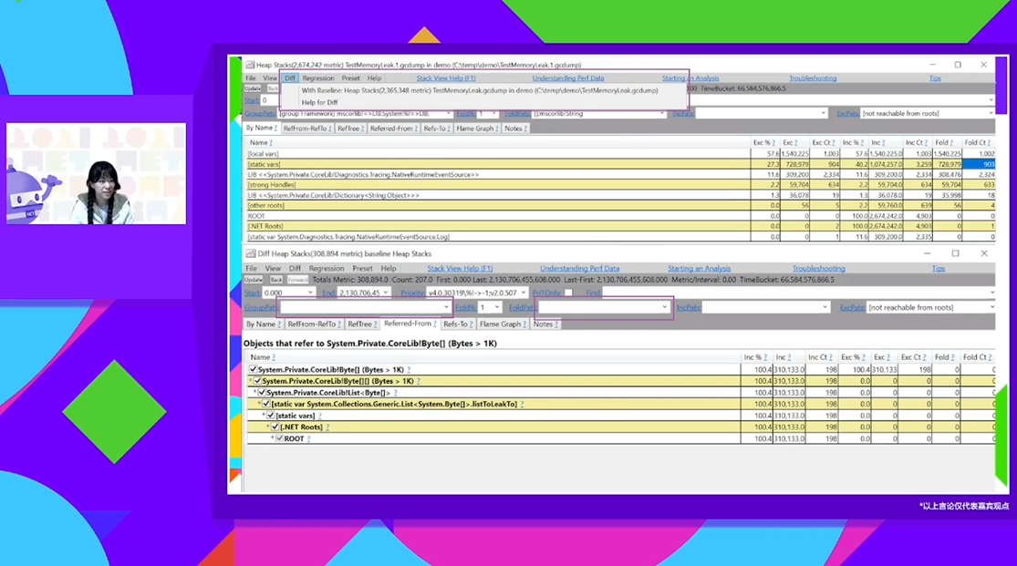 [.NET Conf China 2021 中国 .NET 开发者在线峰会 - 思否编程 - 学编程,来思否,升职加薪快人一步] 上演示过 PerfView 的 Diff 功能来寻找内存增量,个人感觉这个功能非常不错,简单省事,所以这里就整合到 PerfView 专题中,分享一下给大家。