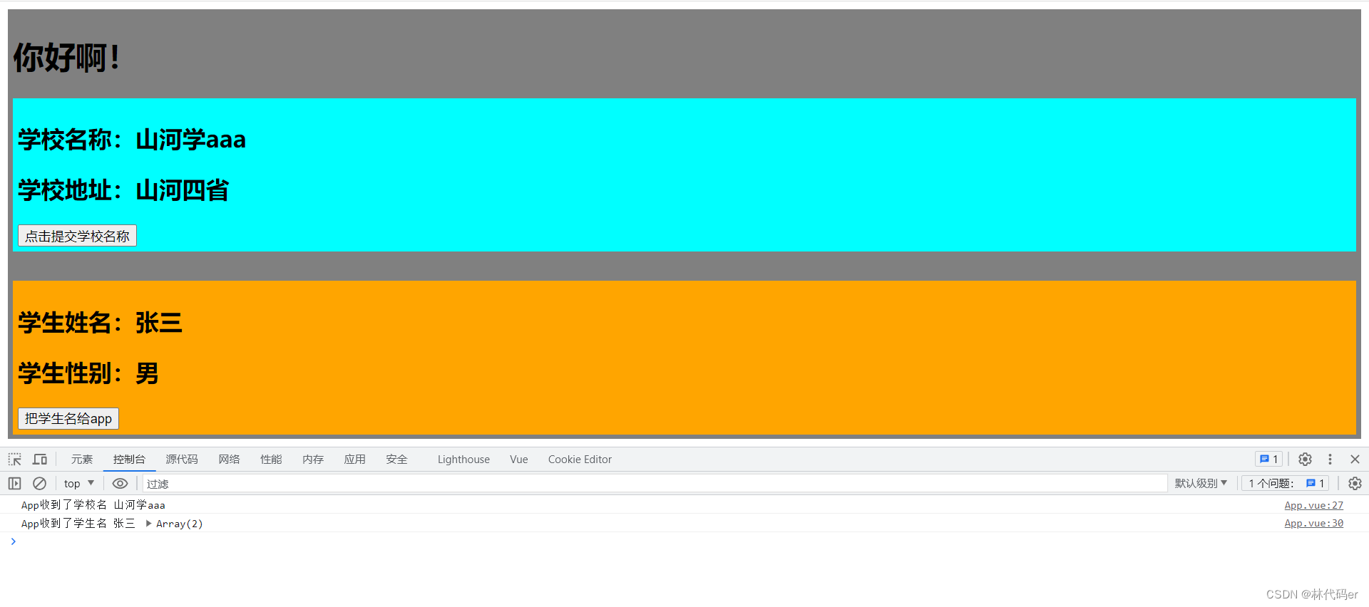 School.vue:通过父组件给子组件传递函数类型的props实现:子给父传递参数