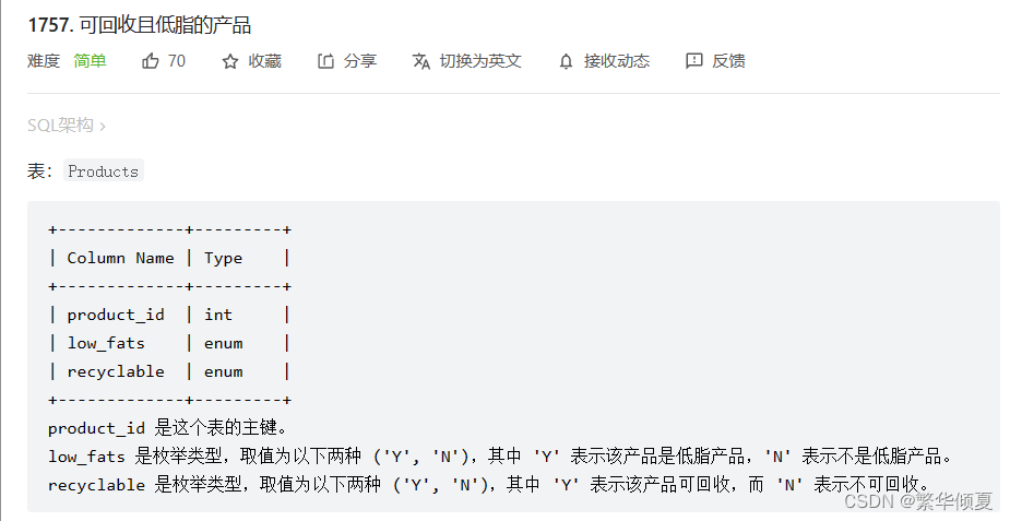 # 力扣(LeetCode):1757. 可回收且低脂的产品