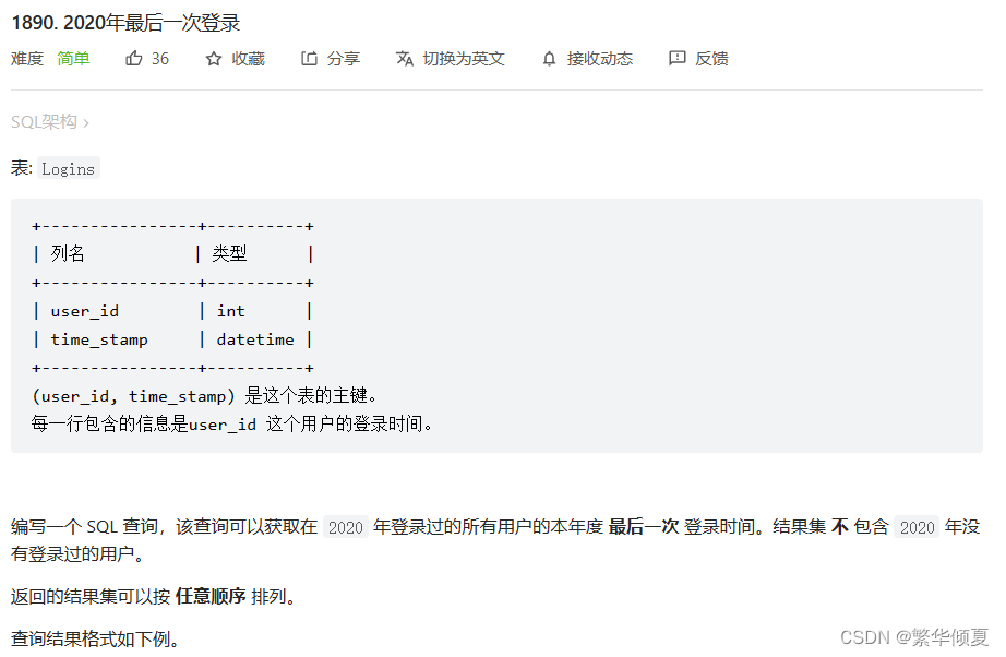 # 力扣(LeetCode):1890. 2020年最后一次登录