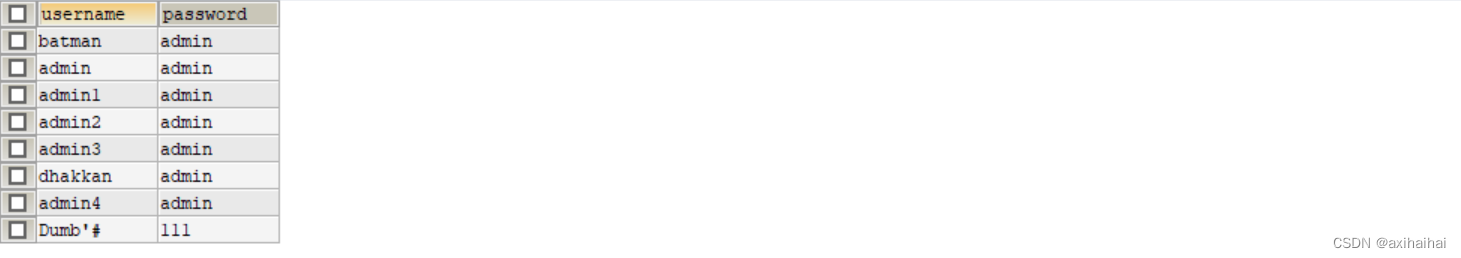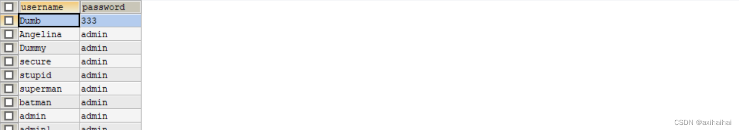 我们新创建的用户名和密码再数据库中的样子如下所示